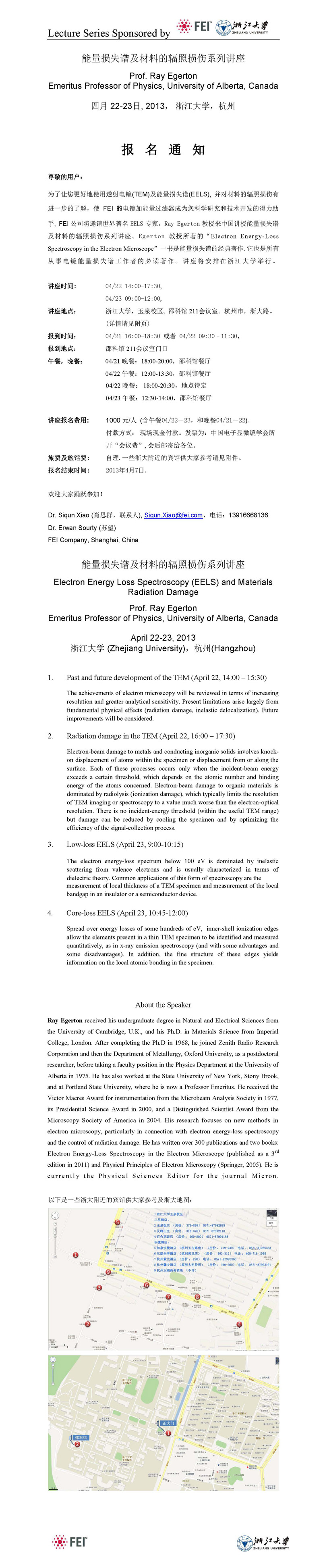 FEI公司能量損失譜及材料的輻照損傷系列講座第二輪通知
