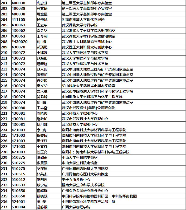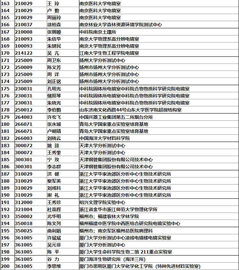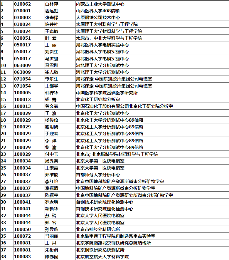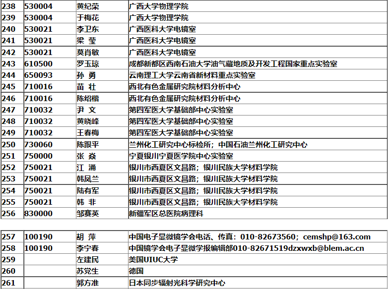 銀川市2008年中國電子顯微鏡學(xué)會會議名單