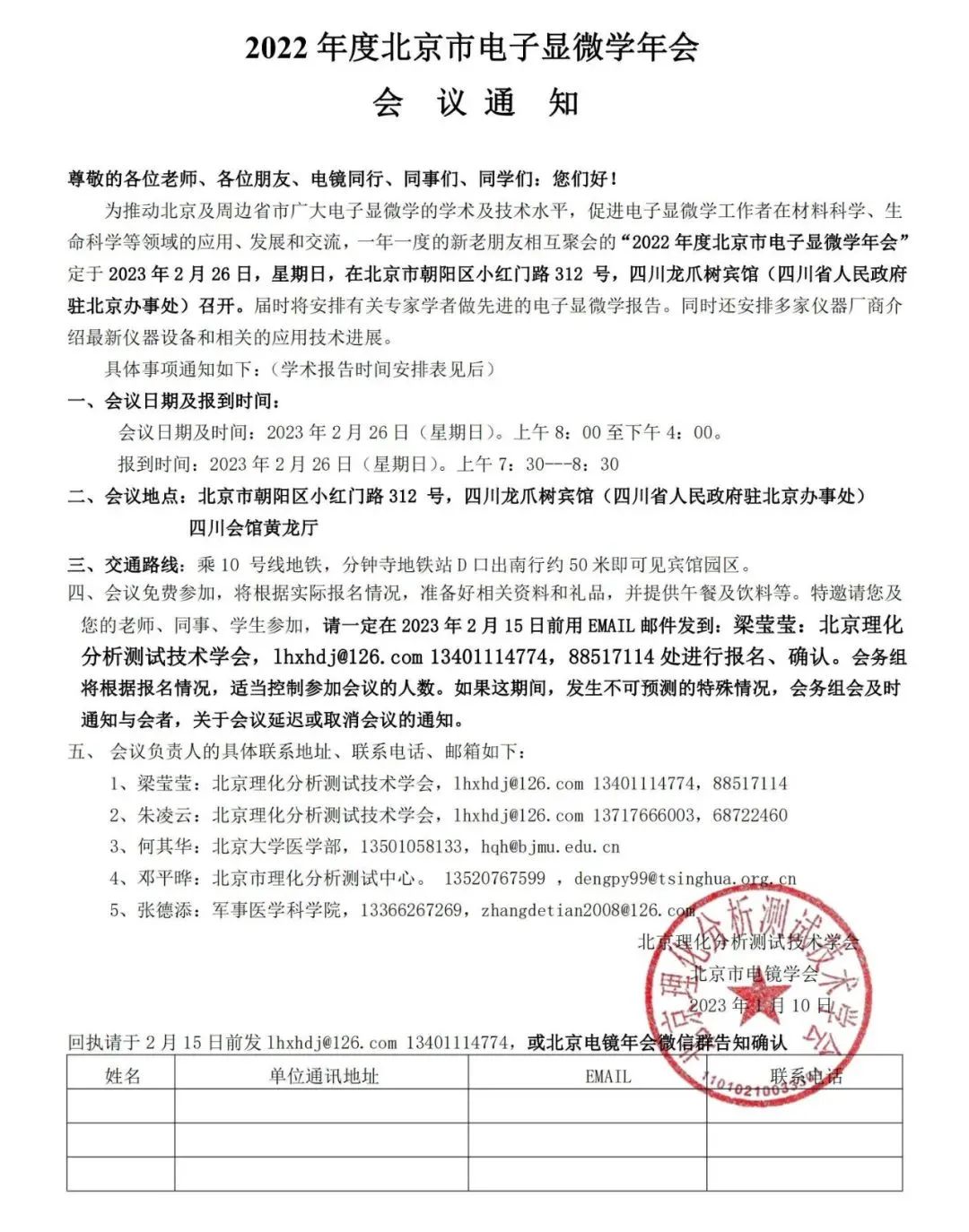 【行業(yè)會(huì)議】2022 年度北京市電子顯微學(xué)年會(huì)通知