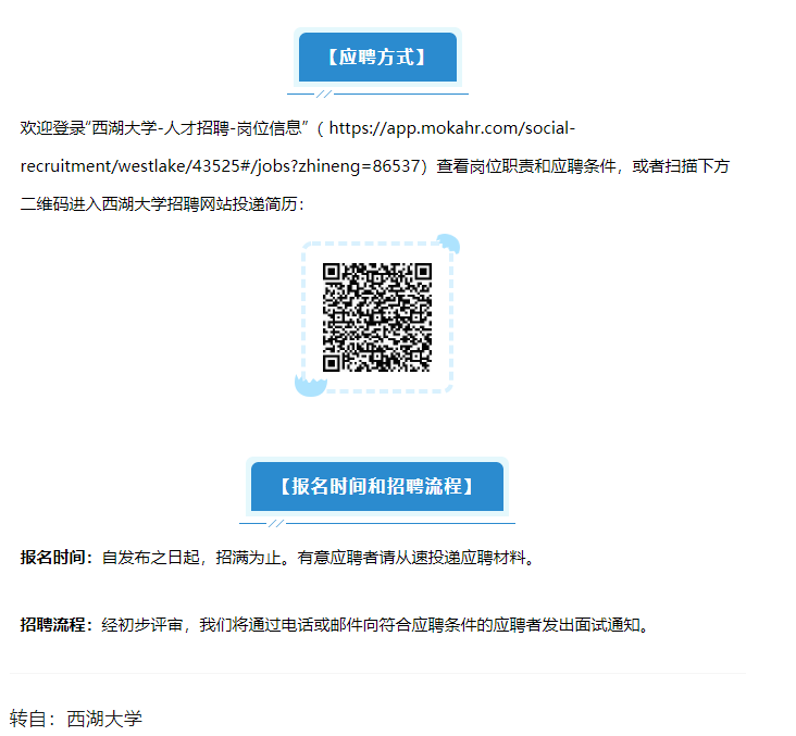 【行業(yè)招聘】分絲析縷,明見萬里 | 西湖大學技術(shù)支撐崗位招聘