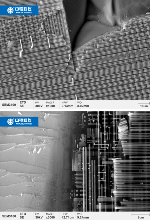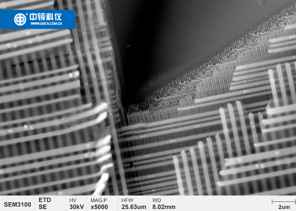 近日,國內(nèi)芯片行業(yè)喜報(bào)連連,8月29日,華為搭載麒麟9000S芯片的Mate 60 Pro正式上線,該芯片上行峰值網(wǎng)速可以達(dá)到5G標(biāo)準(zhǔn)。標(biāo)志著華為突破1079天封鎖!麒麟芯片正式回歸。8月30日中國移動宣布,國內(nèi)首款商用可重構(gòu)5G射頻收發(fā)芯片“破風(fēng)8676”研制成功。 電子顯微鏡被廣泛應(yīng)用于芯片設(shè)計(jì)、制造和分析,芯片設(shè)計(jì)者可以通過SEM深入了解芯片內(nèi)部結(jié)構(gòu),優(yōu)化電路布局和排線方式,提高電路的性能和功耗比,觀察和分析微小缺陷和結(jié)構(gòu)變化從而有效提高了芯片的可靠性和穩(wěn)定性,為芯片研發(fā)人員提供了重要的數(shù)據(jù)支持。 下面我們就隨著電子顯微鏡的視野走進(jìn)納米尺度下芯片的世界: 本次選取了Intel奔騰4524(90nm制程)和Intel奔騰雙核E6600(45nm制程)和晶圓,利用掃描電子顯微鏡(SEM)進(jìn)行了觀察。 首先,晶圓放大50倍后,可以看到整整齊齊地排列著數(shù)不盡器件和導(dǎo)線就像一座星羅密布的城池里面縱橫交錯(cuò)的街道。 晶圓放大1000倍,可以看到一個(gè)個(gè)器件整齊排列,正如城池內(nèi)一個(gè)個(gè)建筑物。 cpu芯片放大了1000倍和3000倍,可以看到內(nèi)部的導(dǎo)線整齊地排列,像一條條復(fù)雜的高架橋,連接cpu內(nèi)各個(gè)部件。 放大5000倍,可以看到cpu芯片內(nèi)部有多個(gè)分層,而且每層連線的線徑、間距、走向均不一致,隨著層數(shù)越深線徑、間距越小。 放大到10000倍,可以看到最下層的部件,對比這兩款cpu,可以明顯看出Intel奔騰雙核E6600比Intel奔騰4524精細(xì)得多,經(jīng)過測量,分別為47納米和95nm,與制程參數(shù)基本一致。 芯片被譽(yù)為是人類智慧的“結(jié)晶”,看起來很小,但內(nèi)部結(jié)構(gòu)極為復(fù)雜,對于人類的各個(gè)方面生活都有著深遠(yuǎn)的影響和價(jià)值,電子顯微鏡和芯片一樣,同屬于“卡脖子”技術(shù),此次芯片的突破為我們注入一劑強(qiáng)力劑,只要我們牢牢抓住科技創(chuàng)新的“牛鼻子”,相信在不遠(yuǎn)的將來,“卡脖子”技術(shù)將被我們一一突破。 回頭望,中國芯道阻且長終破浪, 往前看,電鏡夢行而不輟看東方。 編寫:趙勝藍(lán) 攝影:郭 珊 制作:李慧芳 審核:王 萍 校對:李鳳麗、殷 雪