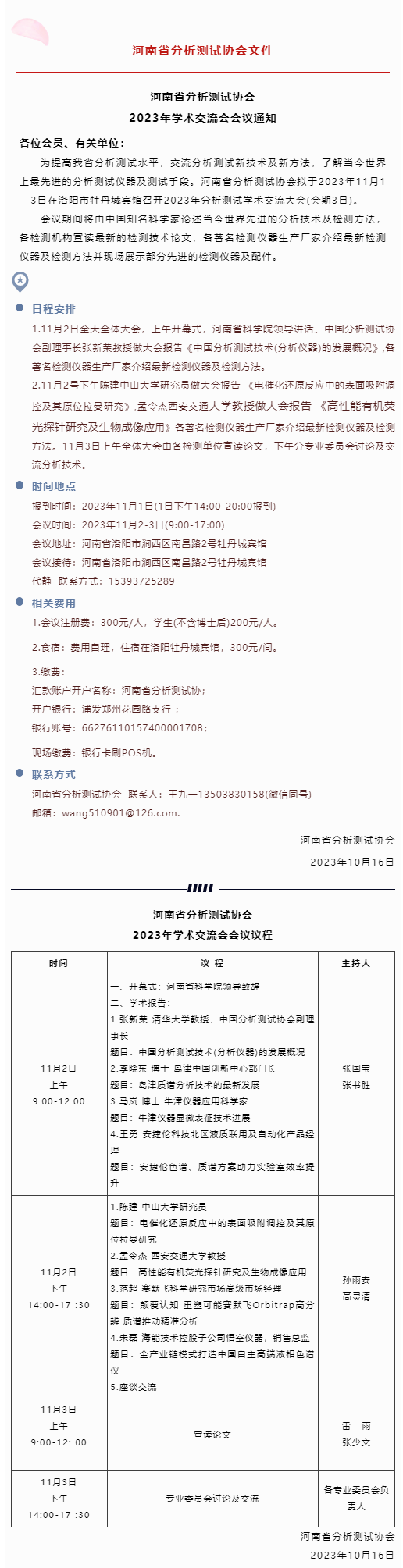 【行業(yè)會(huì)議】河南省分析測(cè)試協(xié)會(huì)2023年學(xué)術(shù)交流會(huì)會(huì)議通知