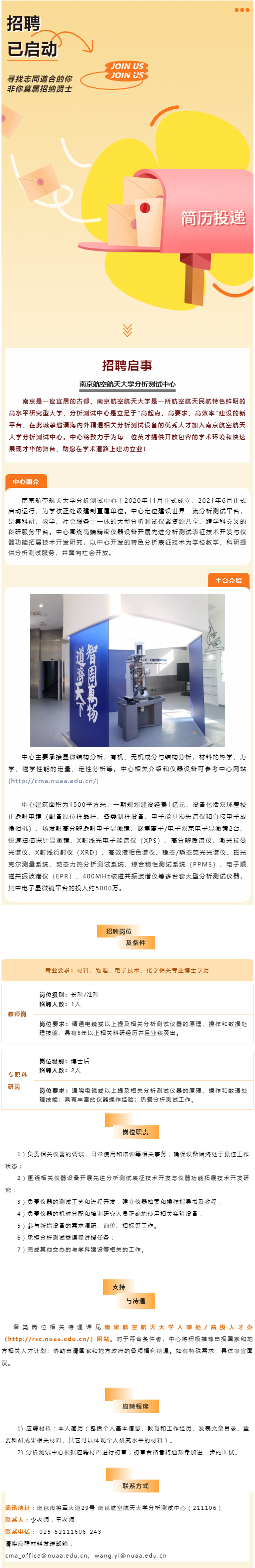 【行業(yè)招聘】南京航空航天大學(xué)分析測(cè)試中心工作人員招聘啟事
