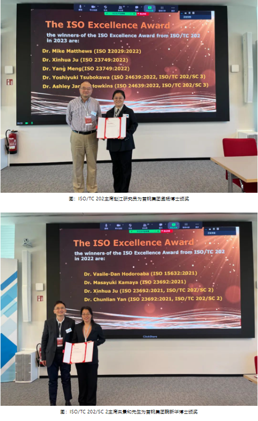 ISO卓越貢獻獎是由ISO中央秘書處和各技術委員會共同簽發(fā)的一個獎項,旨在表彰在ISO國際標準制修訂工作中做出突出貢獻的專家、項目負責人或工作組召集人。這個獎項的設立旨在表彰那些在ISO國際標準制定過程中發(fā)揮重要作用,并做出卓越貢獻的個人或團體。 為表彰2022年—2023年期間在ISO/TC 202技術委員會標準研制方面做出突出貢獻的標準專家,國際標準化組織微束分析技術委員會(ISO/TC 202)第30次全體會議特別新增“ISO卓越貢獻獎(ISO Excellence Award)”頒獎典禮,為來自中國、日本、德國、英國的多名專家頒發(fā)獲獎證書。 來自中國首鋼集團的三名女性教授級高級工程師:鞠新華、嚴春蓮和孟楊,巾幗不讓須眉,在本次頒獎典禮上格外亮眼。特別是鞠新華博士,在2022、2023兩年接連完成兩項國際標準,梅開二度!可喜可賀! 中國專家,尤其是女性專家在國際標準化組織微束分析技術委員會(ISO/TC 202)中的精彩表現(xiàn),贏得了其他國家同行的認可和尊重。這三位女性教授級高工的成就表明,只要有才華、有恒心、有毅力,無論在哪個領域,女性都可以取得卓越的成績。 中國專家在國際標準化組織微束分析技術委員會中扮演著日益重要的角色;他們的貢獻推動了微束分析技術的標準化發(fā)展,并對提升中國的國際地位和影響力起到了重要作用。 再次向獲獎專家表示由衷祝賀!