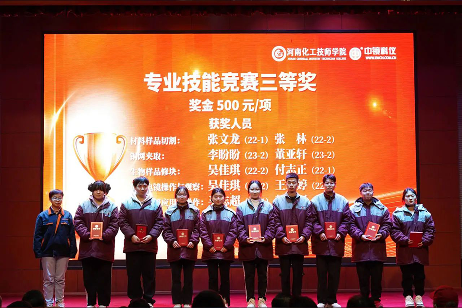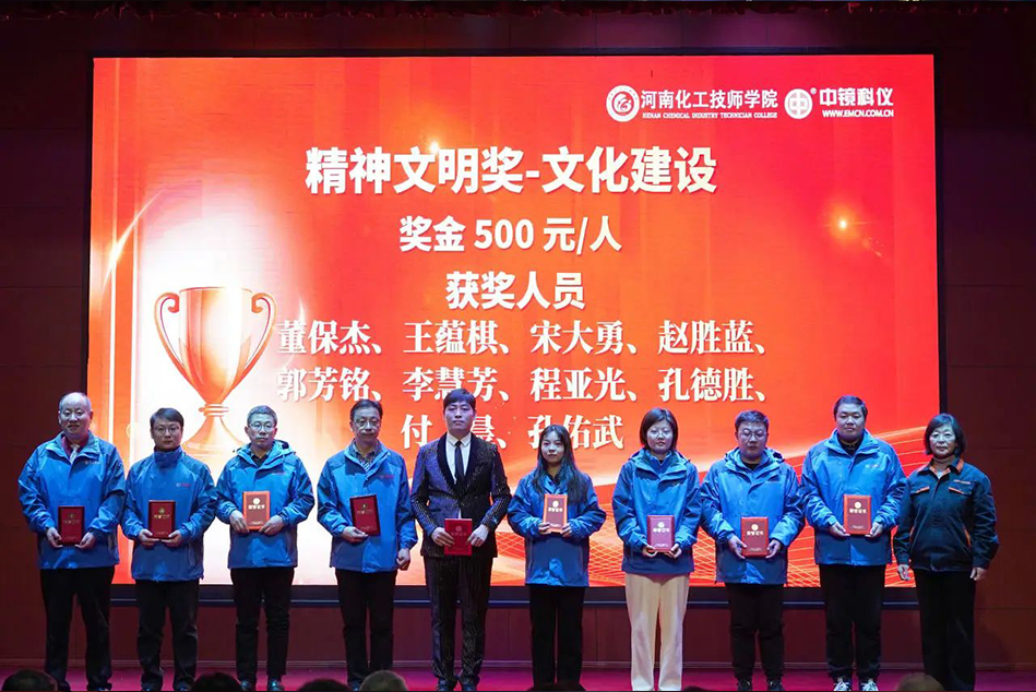 中鏡科儀集團(tuán) 2023年度表彰大會暨 2024年新年聯(lián)歡會隆重舉行! 日月其邁,時盛歲新。2024年1月6日上午,以“攜手逐夢 綻放未來”為主題,中鏡科儀集團(tuán)2023年度表彰大會暨2024年新年聯(lián)歡會在河南化工技師學(xué)院信息綜合樓會議廳隆重舉行! 來自中鏡科儀集團(tuán)(開封地區(qū))全體員工、河南化工技師學(xué)院電鏡專業(yè)全體師生、部分就業(yè)用人單位代表等參加了此次盛會!年會由中鏡科儀集團(tuán)孔德勝、郭珊和電鏡專業(yè)22級學(xué)生姚金鵬、23級學(xué)生郭若晗共同主持。 主持人合影 河南化工技師學(xué)院黨委委員管錚教授、實驗技術(shù)學(xué)院院長魏葆婷、副院長火隆出席會議。 微束科技集團(tuán)董事長兼總經(jīng)理郭新勇,中鏡科儀集團(tuán)副總經(jīng)理王萍,河大科技兼菲泰姆公司總經(jīng)理董保杰,中鏡科儀兼河大科技副總經(jīng)理、河南農(nóng)業(yè)大學(xué)趙新成教授,河大科技公司副總經(jīng)理張康,菲泰姆公司副總經(jīng)理郭芳銘出席會議。 會議邀請了微束科技集團(tuán)教育發(fā)展專家顧問、開封市政府原副秘書長張宛紅,微束科技集團(tuán)戰(zhàn)略發(fā)展專家顧問、原開封市交通運輸局正處級調(diào)研員薛勇,開封中鏡科儀職業(yè)技能培訓(xùn)學(xué)校校長、河南大學(xué)張順利教授,微束科技集團(tuán)項目評定專家組組長、開封市科技局原副局長、一級調(diào)研員劉偉,微束科技集團(tuán)職稱評定專家組組長、河南大學(xué)宋天征教授,中鏡科儀研發(fā)部主任、河南大學(xué)張興堂教授,中鏡科儀分析檢測學(xué)科帶頭人、河南大學(xué)敬永升教授。 參加線上會議的有云南省農(nóng)業(yè)科學(xué)院生物技術(shù)與種質(zhì)資源研究所所長張仲愷研究員,微束科技集團(tuán)副總經(jīng)理兼中鏡科儀總經(jīng)理任江鳴,微束科技集團(tuán)副總經(jīng)理兼中科百測總經(jīng)理許耀華,微束科技集團(tuán)顧問團(tuán)團(tuán)長張衛(wèi)良、財務(wù)總監(jiān)陳平、各地區(qū)經(jīng)理。 出席年會的專家及領(lǐng)導(dǎo) 河南化工技師學(xué)院黨委委員 管錚致辭管錚致開幕辭,他首先對傾力支持、幫助電鏡專業(yè)發(fā)展的各方人士表示衷心的感謝!他指出,2024是深入改革攻堅之年,河南化院要在專業(yè)建設(shè)、教育教學(xué)質(zhì)量、學(xué)生管理、產(chǎn)教融合等多方面持續(xù)發(fā)力,繼續(xù)與中鏡科儀堅持校企合作,培養(yǎng)出更多“品質(zhì)優(yōu)秀、技能卓越”的電鏡人才,為我國科研事業(yè)做出貢獻(xiàn)! 年會現(xiàn)場 張仲愷作為就業(yè)單位代表發(fā)言,他勉勵同學(xué)們養(yǎng)成持續(xù)學(xué)習(xí)的習(xí)慣、堅定創(chuàng)新的信念,不斷增強專業(yè)能力,在新的征程上愛崗敬業(yè)、矢志奮斗,譜寫更加絢麗的青春篇章。 云南省農(nóng)業(yè)科學(xué)院生物技術(shù)與種質(zhì)資源研究所張仲愷研究員與電鏡專業(yè)同學(xué)們參加線上會議 電鏡專業(yè)的發(fā)展離不開全體師生的砥礪拼搏、團(tuán)結(jié)奮斗。為弘揚先進(jìn)、樹立榜樣,年會中隆重表彰了過去一年中做出貢獻(xiàn)的教師和學(xué)生,并頒發(fā)榮譽證書?!皩I(yè)技能競賽獎”“優(yōu)秀工作組”“優(yōu)秀實習(xí)生”“優(yōu)秀畢業(yè)生”“班級之星”“優(yōu)秀班干”“優(yōu)秀教學(xué)管理”“優(yōu)秀論文獎”等獎項陸續(xù)出爐。這些獎項不僅是對獲獎?wù)邆€人甘于奉獻(xiàn)、追求卓越精神的肯定,更是對不斷拼搏、挑戰(zhàn)自我的美好品質(zhì)的頌揚。 電鏡專業(yè)頒獎現(xiàn)場圖集: 2023年對于公司來說是改革年,發(fā)展年,突破年,這一年我們戰(zhàn)勝了前行道路上的絆腳石,跨越了發(fā)展途中的千山萬水,諸多不易藏在心間,而有一群人,他們不怕苦不怕累,奮戰(zhàn)在自己的工作崗位上,竭盡全力完成公司布置的各項任務(wù),發(fā)揚了艱苦奮斗的優(yōu)良作風(fēng),并落實到一點一滴的行動當(dāng)中,是公司全體同仁學(xué)習(xí)的榜樣,年會對這些優(yōu)秀員工、優(yōu)秀團(tuán)隊進(jìn)行了隆重表彰,激勵了每一位在本職崗位上默默付出,愛崗敬業(yè)的中鏡科儀人。 中鏡科儀集團(tuán)頒獎現(xiàn)場圖集: 大會上,郭新勇高度肯定了過去一年大家所取得的各項成績,向受到表彰的先進(jìn)集體和優(yōu)秀個人致以真誠的敬意和熱忱的祝賀!并勉勵他們繼續(xù)努力,再創(chuàng)新功。同時號召公司廣大員工向獲獎人員學(xué)習(xí),創(chuàng)新工作思路,攜手逐夢,為公司的發(fā)展壯大譜寫新的篇章。 微束科技集團(tuán)董事長兼 總經(jīng)理郭新勇致辭 與此同時,形式多樣、精彩紛呈的文藝表演帶給在場人員視覺和聽覺上的多重盛宴。既有深情款款的詩歌朗誦,展現(xiàn)公司日新月異、蓬勃發(fā)展的良好風(fēng)貌;又有活力四射的舞蹈演出,彰顯青春風(fēng)采;更有悠揚動聽的歌曲演唱以及妙趣橫生的三句半,引得現(xiàn)場觀眾笑聲連連,掌聲不斷;還有鏗鏘的架子鼓演奏,氣勢如虹,引爆全場。多個精彩節(jié)目輪番上演,全面地展現(xiàn)出了中鏡科儀員工樂觀向上、團(tuán)結(jié)奮進(jìn)的精神風(fēng)貌。 年會中劉偉、張順利、王萍分別即興演唱了歌曲《江河萬古流》、《好漢歌》、《歷史的天空》。獨特的