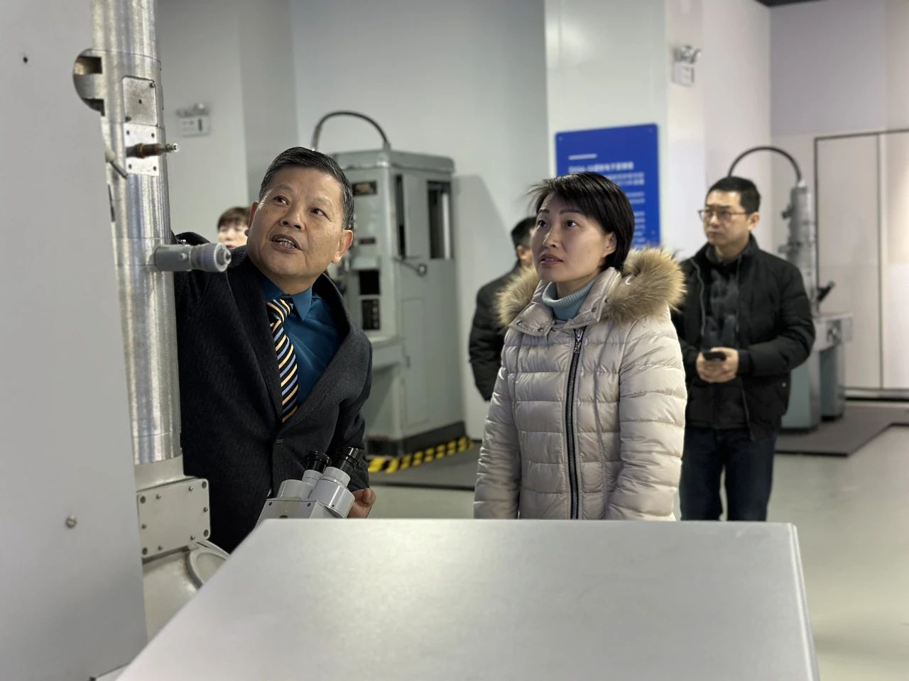 3月5日上午,河南省工業(yè)和信息化廳裝備工業(yè)處副處長(zhǎng)朱景萍、四級(jí)主任科員呂偉鋒,河南省機(jī)器人和數(shù)控機(jī)床產(chǎn)業(yè)鏈推進(jìn)專班成員劉序、張震,開封市工信局裝備工業(yè)科科長(zhǎng)牛雪亮等相關(guān)領(lǐng)導(dǎo)一行人到中鏡科儀研發(fā)中心進(jìn)行調(diào)研。董事長(zhǎng)郭新勇、副總經(jīng)理張康、研發(fā)部副主任劉占社、河南區(qū)經(jīng)理唐歌等熱情接待。 調(diào)研組參觀中鏡科儀 朱處長(zhǎng)一行實(shí)地調(diào)研了中鏡科儀的研發(fā)中心實(shí)驗(yàn)室,聽取了公司優(yōu)勢(shì)產(chǎn)品、市場(chǎng)規(guī)模、在研項(xiàng)目、生產(chǎn)能力等情況的工作匯報(bào)。調(diào)研組一行對(duì)公司發(fā)展提出了指導(dǎo)意見和建議,并對(duì)公司的創(chuàng)新能力與產(chǎn)品定位,以及在行業(yè)服務(wù)所取得的成績(jī)給予充分肯定,希望堅(jiān)定信心、堅(jiān)守特色、提升核心競(jìng)爭(zhēng)力,加速科技成果轉(zhuǎn)化,堅(jiān)持走“專精特新”的高質(zhì)量發(fā)展道路。 調(diào)研組參觀電子顯微鏡博物館 隨后,參觀了中鏡科儀與河南化院聯(lián)合創(chuàng)辦的電子顯微鏡博物館。郭董事長(zhǎng)詳細(xì)講解了電子顯微鏡的發(fā)展歷程,并介紹了校企合作共建電鏡專業(yè)的發(fā)展歷程和學(xué)生就業(yè)情況。 合影留念 中鏡科儀始終貫徹“從商育人”的經(jīng)營(yíng)理念,持續(xù)加大科技創(chuàng)新和自主研發(fā)的力度,努力構(gòu)建電鏡產(chǎn)業(yè)生態(tài)園,勇做新時(shí)代高質(zhì)量發(fā)展開路先鋒。