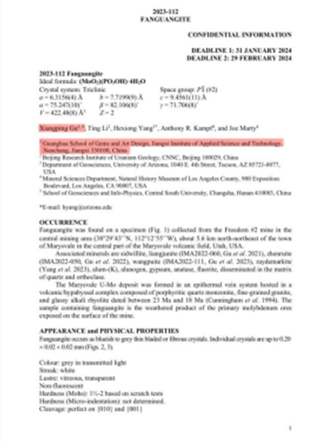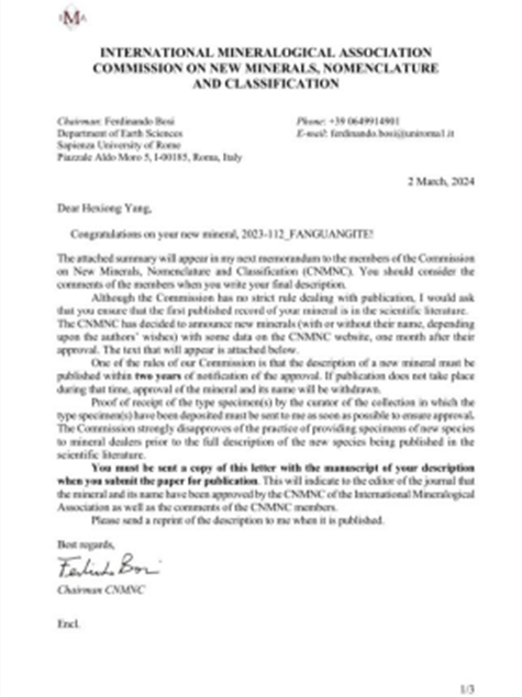 【新聞資訊】喜報(bào)!中國地質(zhì)學(xué)家范光,獲“范光鉬礦(Fanguangite)”國際礦物學(xué)協(xié)會(huì)(IMA)新礦物命名