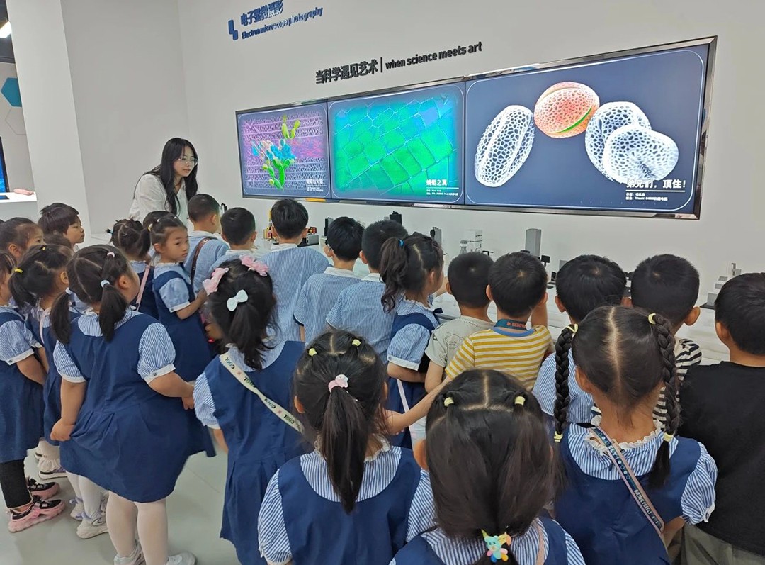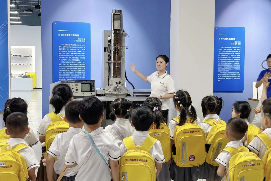 中鏡科儀開展 系列電鏡科普活動 5月29日下午,由開封市科學(xué)技術(shù)局、開封市委宣傳部、開封市科學(xué)技術(shù)協(xié)會主辦,河南化工技師學(xué)院、河南中鏡科儀科技有限公司承辦的以“弘揚(yáng)科學(xué)家精神 激發(fā)全社會創(chuàng)新活力”為主題的2024年開封市科技活動周啟動儀式在河南化工技師學(xué)院成功舉辦。 河南省科普基地建設(shè)單位授牌儀式 市科技局副局長郭繼敏,市委宣傳部三級調(diào)研員何先超,市科協(xié)副主席李志明,河南化工技師學(xué)院副書記喬林,河南化工技師學(xué)院副校長趙峰,河南中鏡科儀科技有限公司董事長郭新勇等出席活動。郭繼敏代表主辦單位致辭,喬林代表2023年省科普基地建設(shè)單位發(fā)言,省“小小科學(xué)家科技創(chuàng)新操作室”學(xué)生代表趙語涵發(fā)言,郭繼敏宣布2024年開封市科技活動正式啟動。 開封市科技活動周啟動儀式 為落實(shí)習(xí)近平總書記關(guān)于科技創(chuàng)新的重要論述,深入實(shí)施全民科學(xué)素質(zhì)行動,中鏡科儀積極響應(yīng)國家號召,發(fā)揮省科普基地作用,在2024年全國科技活動周期間,組織開展了一系列豐富多彩、特色鮮明、亮點(diǎn)紛呈的科普活動。 播撒科學(xué)之美 盡享科普盛宴 開封市科技活動周啟動儀式期間,中鏡科儀開展了VR元宇宙場景體驗(yàn)活動,面對新奇的設(shè)備,學(xué)生們躍躍欲試,紛紛戴上VR眼鏡親身體驗(yàn)科技帶來的視覺震撼和無限可能。 VR元宇宙場景體驗(yàn)活動現(xiàn)場 探索微觀世界 點(diǎn)亮科學(xué)夢想 5月28日—29日,中鏡科儀集團(tuán)聯(lián)合開封市教育悅都幼兒園在開封電子顯微鏡博物館組織開展了“探索微觀世界 點(diǎn)亮科學(xué)夢想”科普活動。悅都幼兒園150余名師生,分5批來到電鏡博物館參觀學(xué)習(xí)。 中鏡科儀科普志愿者現(xiàn)場講解 伴隨著中鏡科儀科普志愿者形象生動地講解,孩子們走進(jìn)微觀世界、感受人類視覺的延伸,見證著改革開放以來我國在電子顯微科研領(lǐng)域從無到有的風(fēng)雨歷程。電鏡博物館琳瑯滿目的儀器設(shè)備讓小朋友們目不暇接,兼具專業(yè)與趣味的講解讓陪同的老師們也豎起了大拇指。在這個(gè)能夠沉浸式體驗(yàn)、切身感受的課堂里,科普這件事兒變得生動又有趣! 體驗(yàn)博物館項(xiàng)目 通過此次參觀電鏡博物館,讓小朋友們對電鏡有了更進(jìn)一步的了解,激發(fā)了他們對科學(xué)技術(shù)的興趣,相信這次活動在他們心中種下的科技種子,日后定會長成科技之花! 合影留念 作為河南省科普基地建設(shè)單位,中鏡科儀將以更優(yōu)質(zhì)豐富的內(nèi)容和喜聞樂見的形式,激發(fā)青少年崇尚科學(xué)、探索未知的興趣,培育一大批具備科學(xué)家潛質(zhì)的青少年群體,為加快建設(shè)科技強(qiáng)國夯實(shí)人才基礎(chǔ)。 電子顯微鏡博物館簡介 電子顯微鏡博物館,是由中鏡科儀集團(tuán)與河南化工技師學(xué)院合作共建,始建于2014年10月,坐落于八朝古都——河南省開封市,是一座經(jīng)河南省文物局備案的科技類行業(yè)博物館。藏品主要以電子顯微鏡及其周邊儀器設(shè)備和史料為主,于2016年10月正式對社會開放。館藏有來自于海內(nèi)外高校和科研院所捐贈的電子顯微鏡等展品3000余件,包括透射電子顯微鏡、掃描電子顯微鏡、電子顯微技術(shù)相關(guān)圖文史料等。先后榮獲開封市青少年科普基地、河南省科普基地等榮譽(yù)。